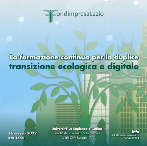 Transizione ecologica e digitale: questo pomeriggio a Latina un incontro di formazione di Fondimpresa Lazio.