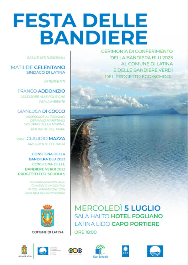 A Latina questo mercoledì “Festa delle bandiere” e dieci anni della Bandiera Blu!