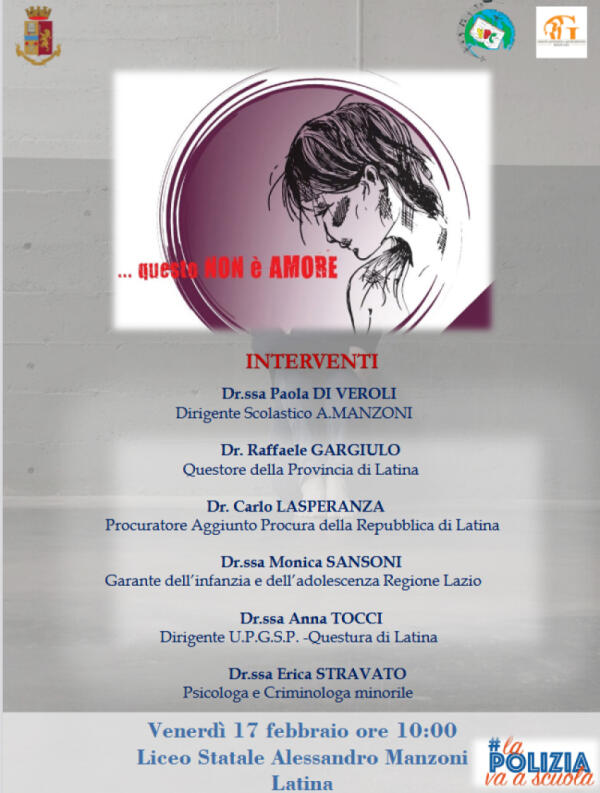 "Questo non è amore", l'iniziativa della Questura contro la violenza di genere: incontro al Manzoni di Latina