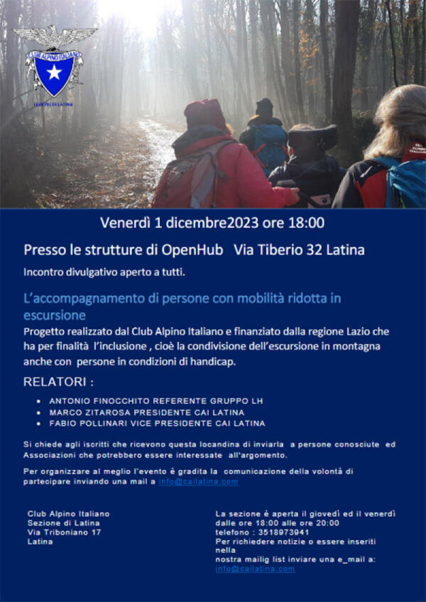 “L’accompagnamento di persone con mobilità ridotta in escursione”: a Latina un incontro divulgativo del Cai.