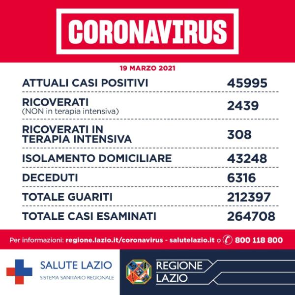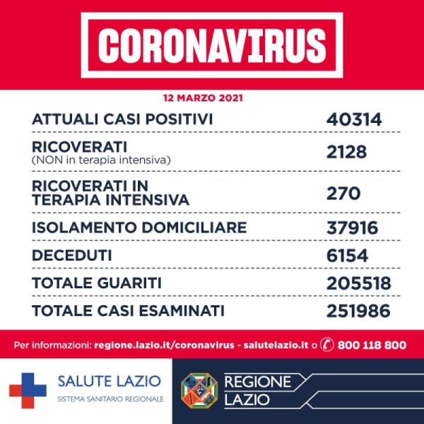 Coroanvirus, il bollettino nel Lazio: 1.728 casi positivi (+231), 20 decessi (-12) e +1.723 guariti. D'Amato: "Pronti a ripartire con vaccinazioni Astrazeneca dopo ok Aifa"
