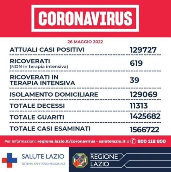 Covid Lazio - 1341 nuovi positivi e 13 decessi
