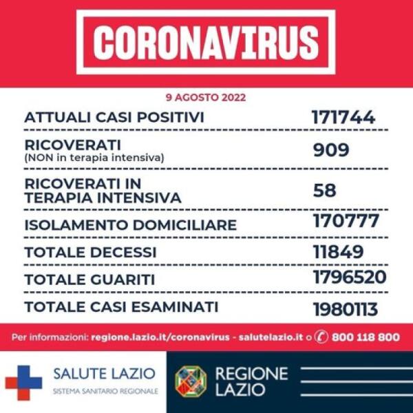 Bollettino Covid Lazio - Rapporto positivi-tamponi al 14,8%