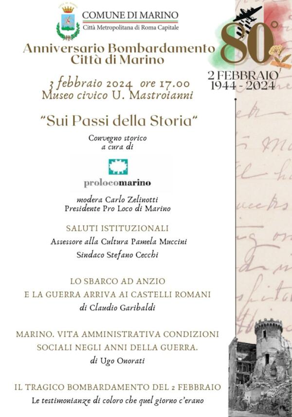 80esimo anniversario del Bombardamento di Marino: oggi il convegno “Sui passi della storia” organizzato dalla Pro Loco.