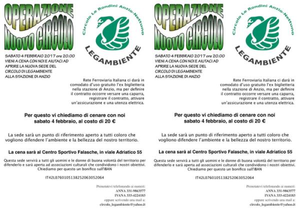 ANZIO – Mancano i soldi della caparra, Legambiente organizza una cena di autofinanziamento.