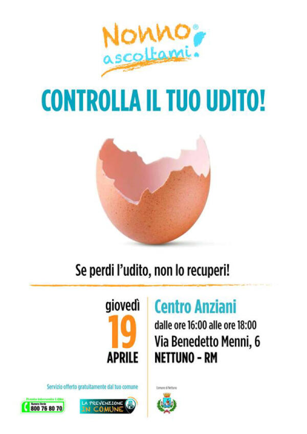 Screening gratuito dell'udito oggi a Nettuno. L'iniziativa è a cura dell'associazione “Nonno Ascoltami!”.