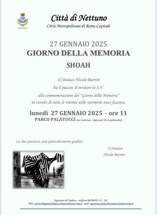 “Memoria”: a Nettuno questa domenica in Aula Consiliare interventi storici, letterari e pittorici per il “Giorno della Memoria”.