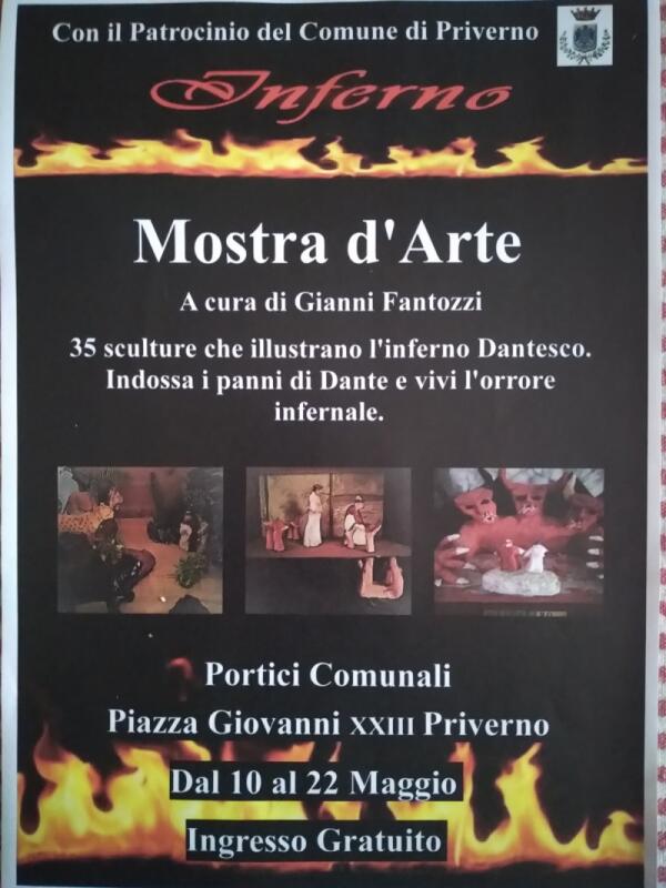 Sotto ai Portici Comunali di Priverno la mostra d’arte “Inferno” di Gianni Fantozzi con 35 sculture che illustrano l'Inferno Dantesco.