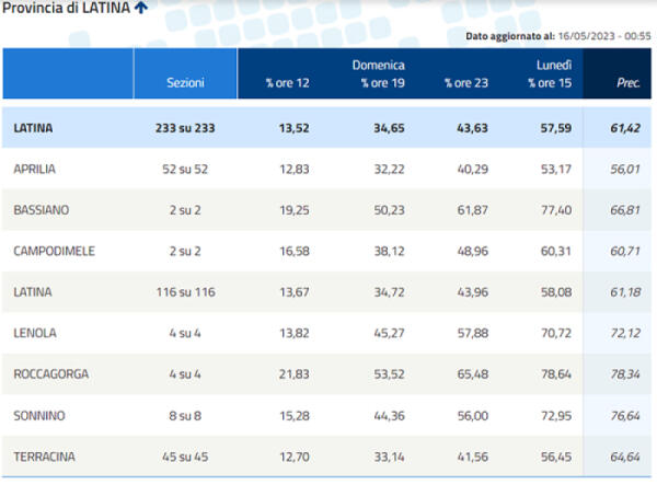 “Maglia nera” per la Città di Aprilia che ha registrato il dato di affluenza più basso dell’intera provincia di Latina.