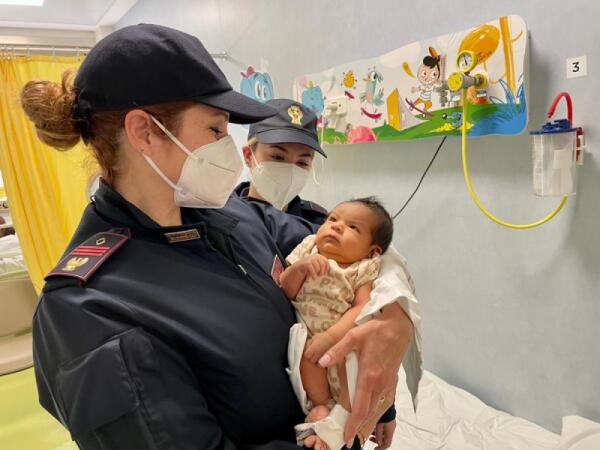 Michelangelo, il neonato battezzato ieri da Papa Francesco al Policlinico Gemelli. Poco prima era stato soccorso dalla Polizia.