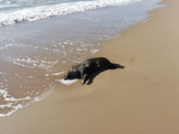 Carcassa di cinghiale da giorni sulla spiaggia di Sabaudia