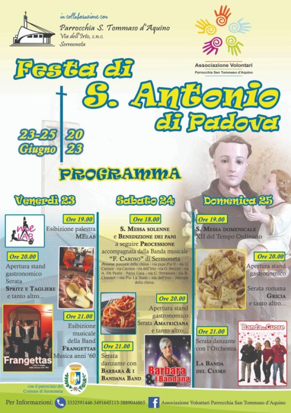 Festa questo fine settimana a Pontenuovo, a Sermoneta, in onore di Sant’Antonio da Padova.