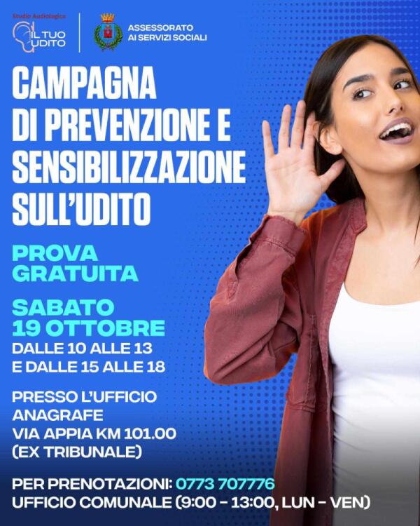 A Terracina questo sabato una giornata per la prevenzione dei disturbi uditivi con visite gratuite.