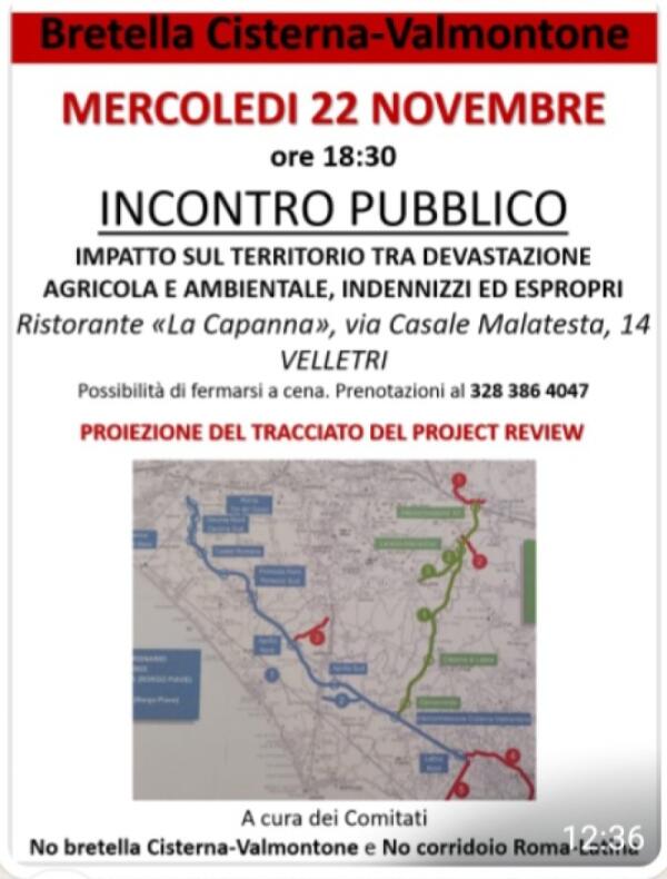Ciserna-Valmontone, Roma-Latina: due nuovi incontri informativi