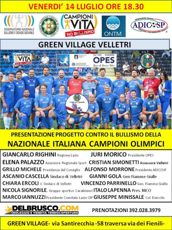 A Velletri la presentazione della maglia della Nazionale Italiana Campioni Olimpici organizzata dall’Osservatorio Nazionale Bullismo e Disagio Giovanile.