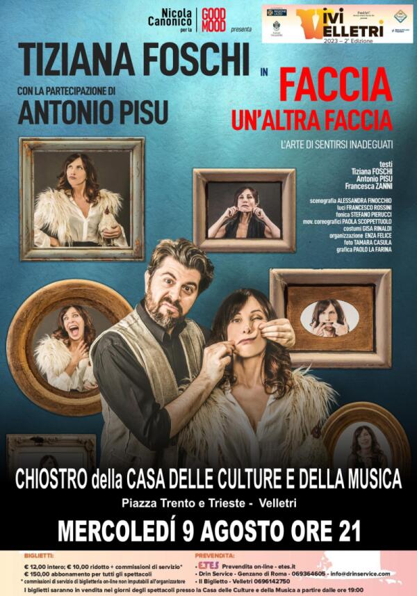 Velletri - Faccia un'altra faccia: mercoledì 9 agosto in scena Tiziana Foschi e Antonio Pisu